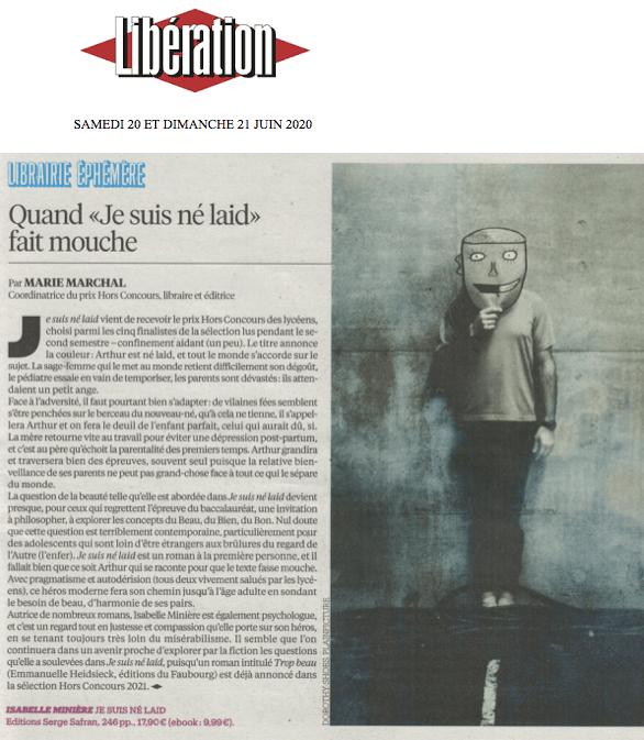 Article de Bertrand Leclair dans Le Monde des Livres du 25/06/20