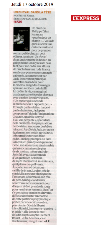 Article de Jean-Marie Gavalda dans le Midi Libre le 06/10/19