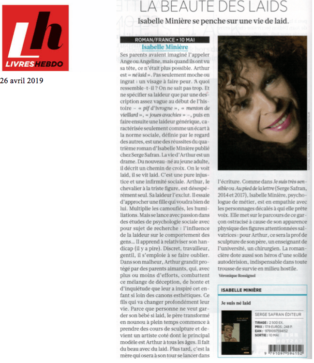 Article de Véronique Rossignol dans Livres Hebdo le 26 avril 2019