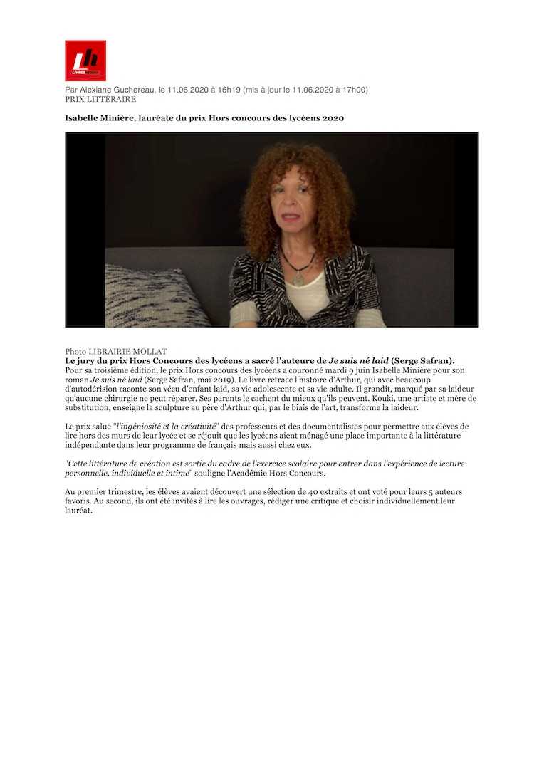 Voir l'image agrandie Isabelle Minière lauréate du Prix Hors Concours des lycéens 2019-2020 Serge SAFRAN2020-06-19T09:30:22+01:00